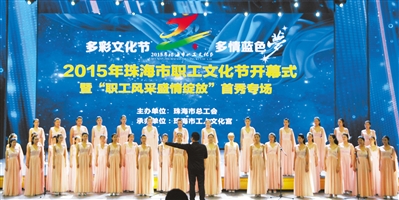 23日下午,“多彩文化节 多情蓝色梦”2015年珠海市职工文化节在圆明新园中心剧场开幕。同时,“职工风采 盛情绽放”首秀专场华丽登场。